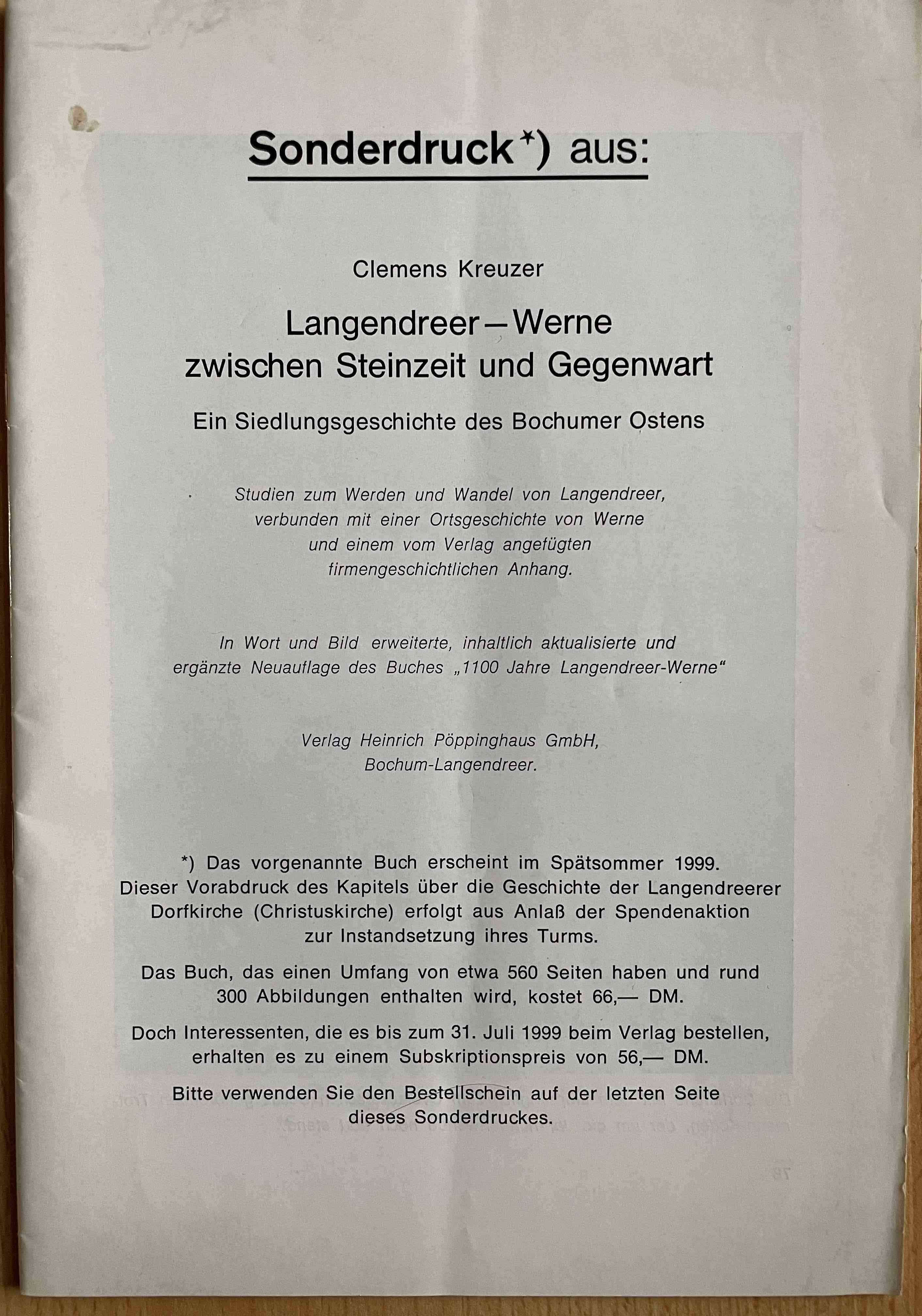 | Sonderdruck aus Langendreer - Werne zwischen Steinzeit und Gegenwart | Kreuzer, Clemens | Pöppinghaus | 1998 |